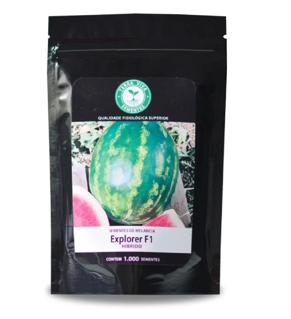 Adquira 100 sementes de melancia híbrida Explorer e cultive melancias produtivas, de sabor doce e fácil cultivo. Ideal para quem busca melancias de tamanho médio e alto teor de nutrientes, perfeitas para consumo fresco, sucos e sobremesas.